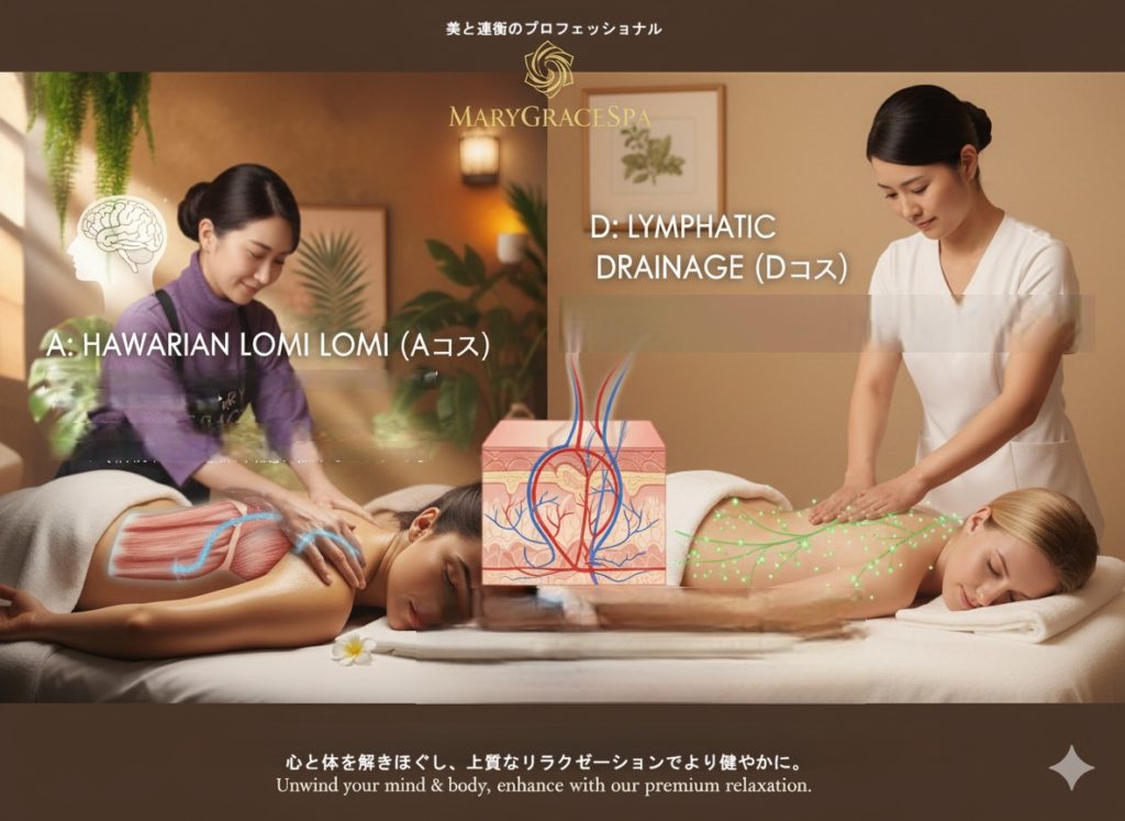 【成田エステ】A「ハワイアンロミロミ」とD「リンパ系ドレナージュ」の違いを“生理解剖”でやさしく解説