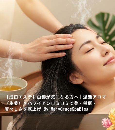 成田 エステ|白髪ケア×温活アロマ(生姜)×ハワイアンロミロミで若々しさを底上げ|成田空港スパ MaryGraceSpa